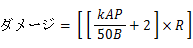 7. ダメージ計算式 攻撃技が相手に与えるダメージは、以下の式で計算されます。 ここで、k とはレベルによって定まる定数で、以下の式で表されます。 A は攻撃側の攻撃力、P は攻撃する技の威力、B は防御側の防御力、L は攻撃側のレベルです。物理技なら攻撃と防御、特殊技なら特攻と特防の値を使います。 また、R はダメージの乱数です。乱数とは、プログラムによりその都度ランダムで決定される数値のことで、ダメージ計算式においては0.85から1の間で0.01刻みに変化する16通りの数値です。同じポケモンの同じ技で同じ相手に何回か攻撃していると、ダメージが少しずつ違っているのがわかりますが、それは乱数があるためです。乱数によって、ダメージは最大で15%も少なくなってしまうのです。 |